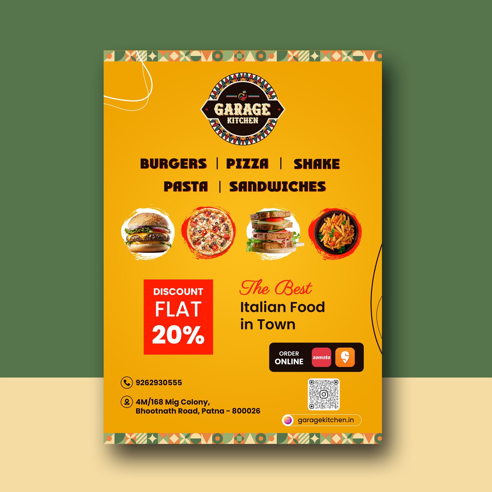 Logos, Brochures, Flyers , Banners, Business cards, Letterheads, Menu cards, Branding, Social media posts, Ads, Product Packaging.